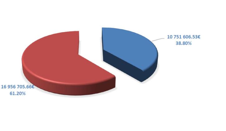 Le budget primitif 2026 atteint un volume global de 27 708 312,19€, réparti de la manière suivante :