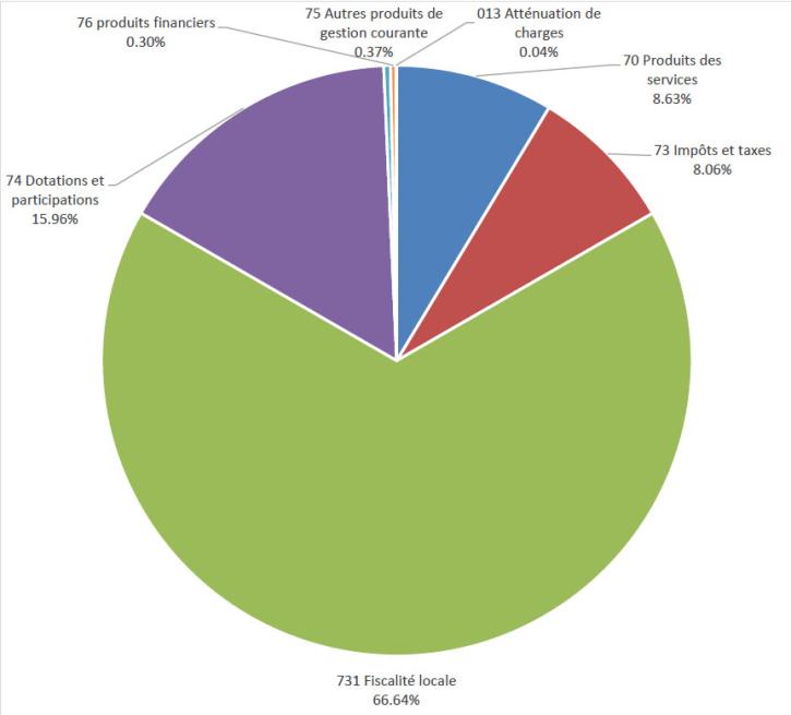Fiscalité locale (731) : impôts directs (taxe foncière) hausse due à la revalorisation des bases des impôts directs de 0.8% par l’Etat, droits de mutation, taxes sur l’électricité, taxes sur la publicité extérieure.