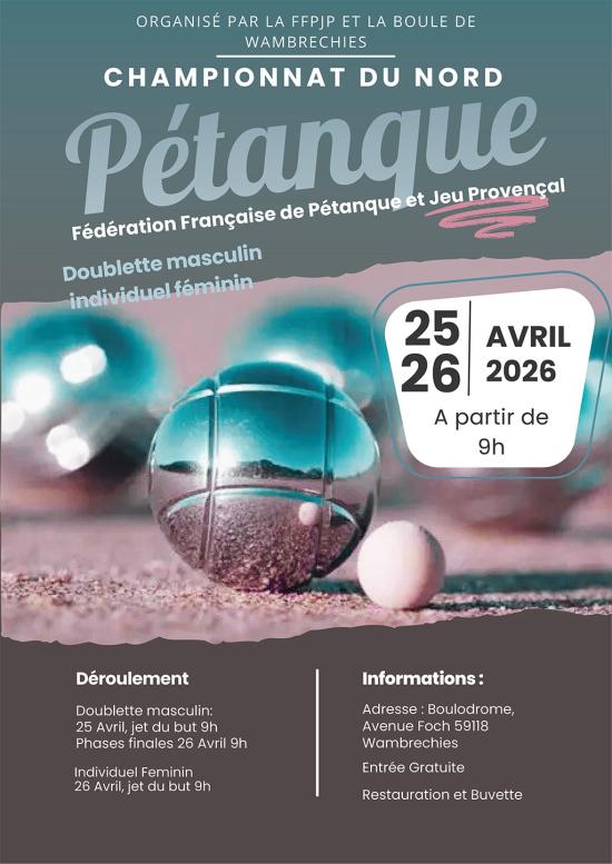 La Boule Wambrechies organise cette année le championnat du Nord de pétanque, en lien avec la Fédération française de pétanque et jeu provençal.
