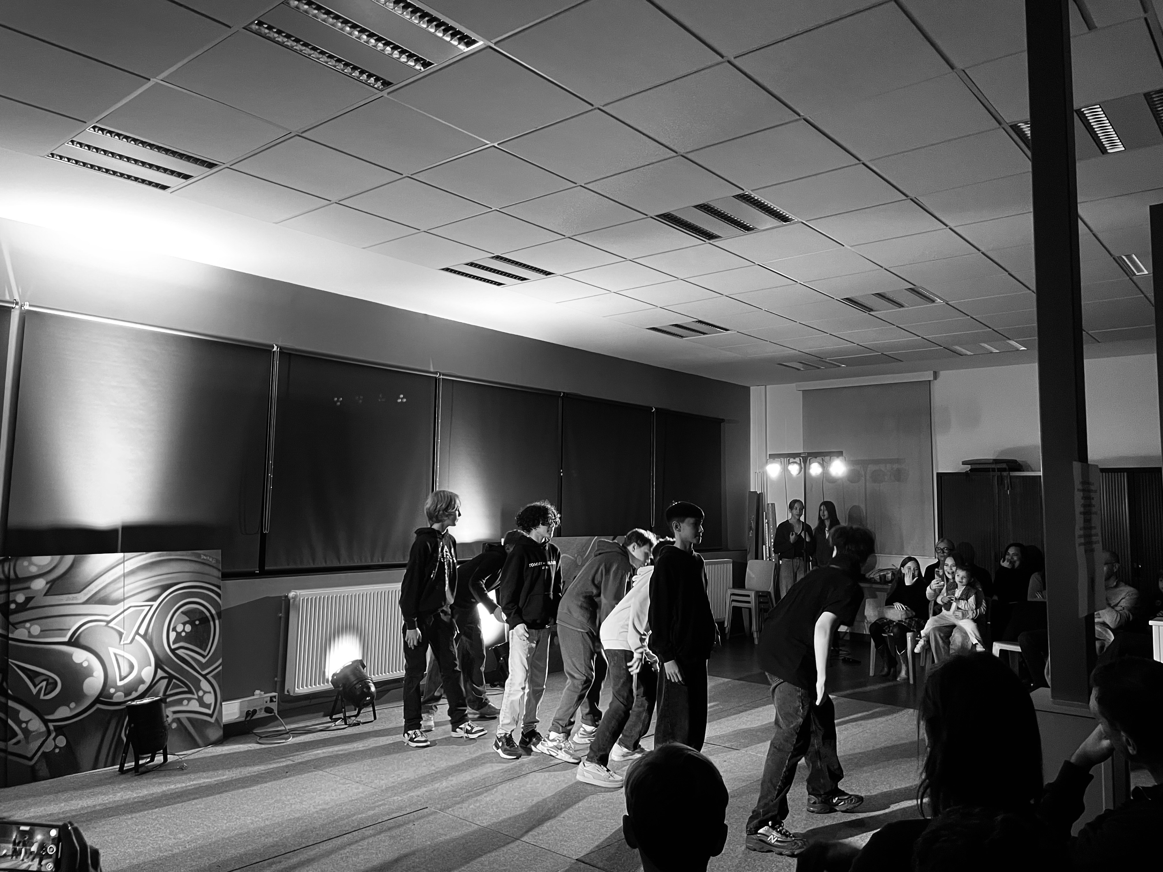 Cette représentation, construite de danses et de saynètes sur une tonalité improvisée, est née pendant les accueils de loisirs d'automne, les ados ayant alors participé à des ateliers hip-hop, graff et thêatre qui ont servi de base d'inspiration.