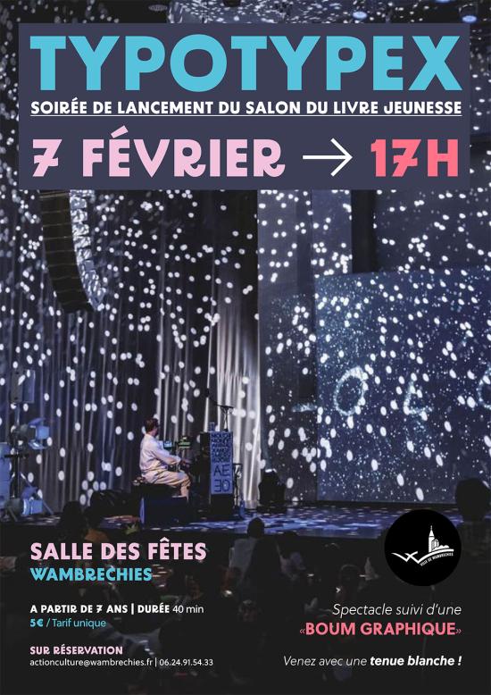 Typotypex est un concert graphique, un voyage poétique musical librement inspiré du poème « Voyelles » d’Arthur Rimbaud.
