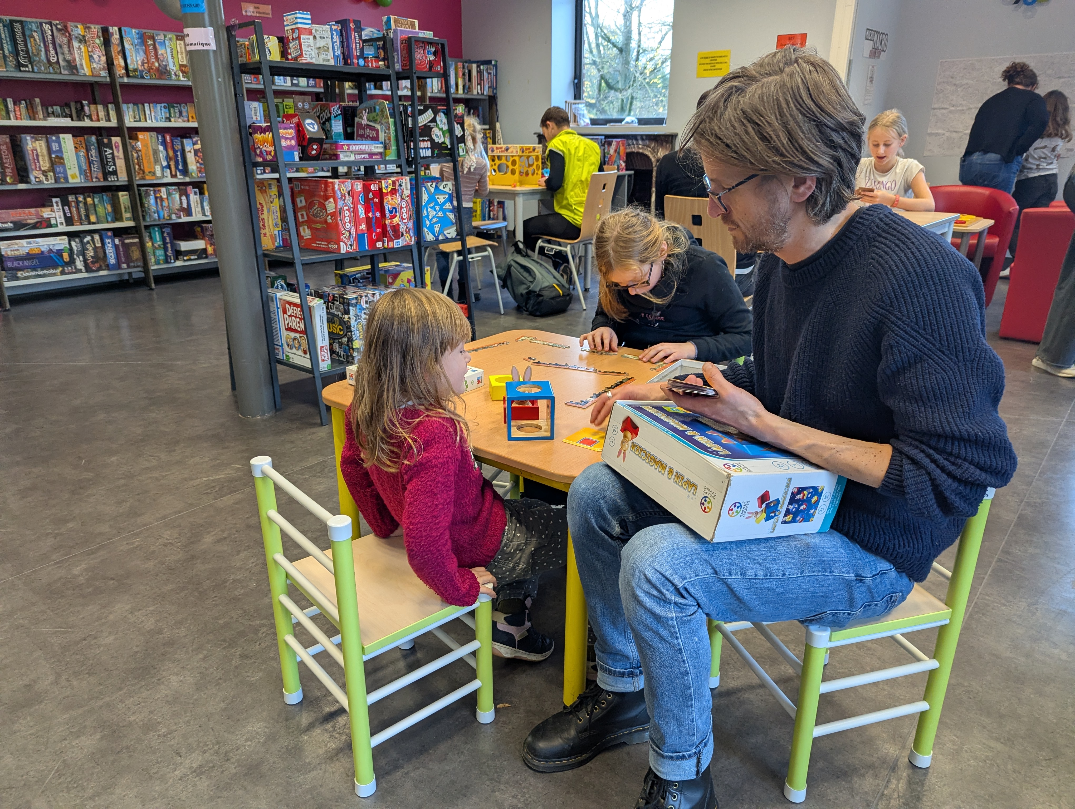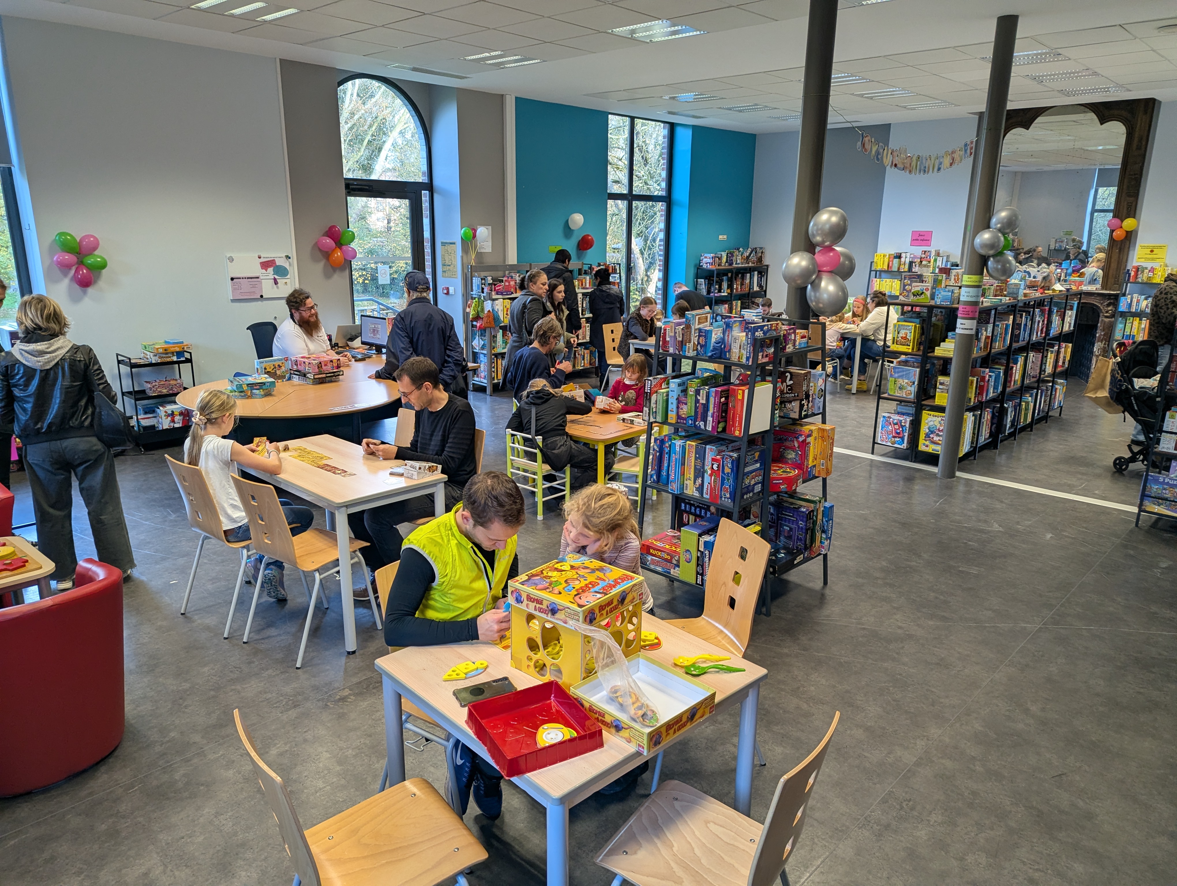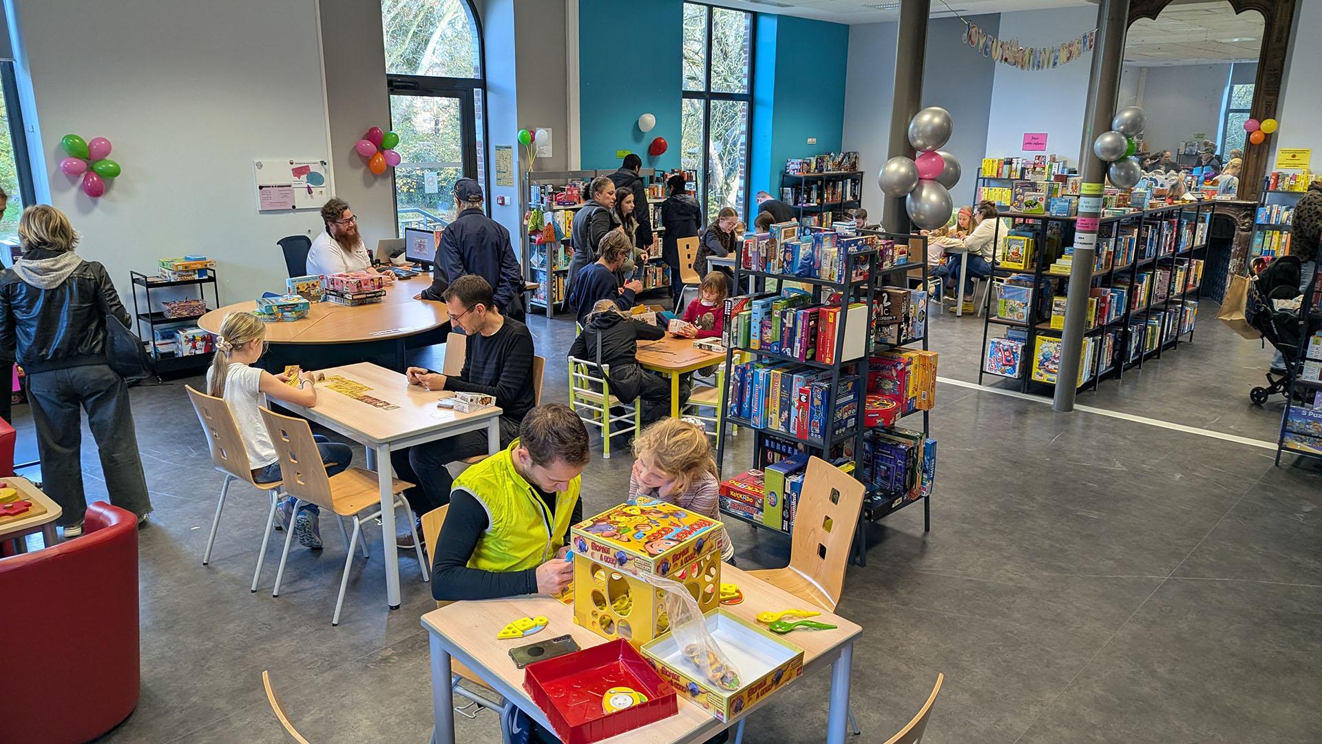 Du monde, des éclats de rire, des familles qui s'essaient à un jeu de plateau, d'autres qui profitent de jeux créatifs, d'assemblage...