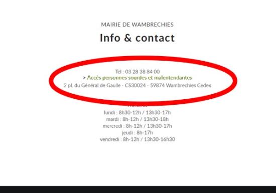 Les deux structures sont aussi directement accessibles depuis wambrechies.fr, en cliquant sur "accès sourds et malentendants" en pied de toutes les pages (onglet "Infos & contact", image ci-contre).
