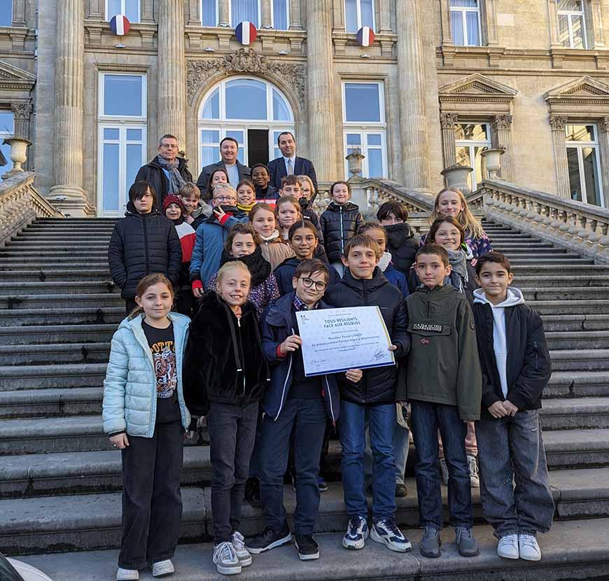 La classe de M Lesage, lauréate du concours « tous résilients face aux risques », y a été mise à l'honneur devant un parterre de personnalités.