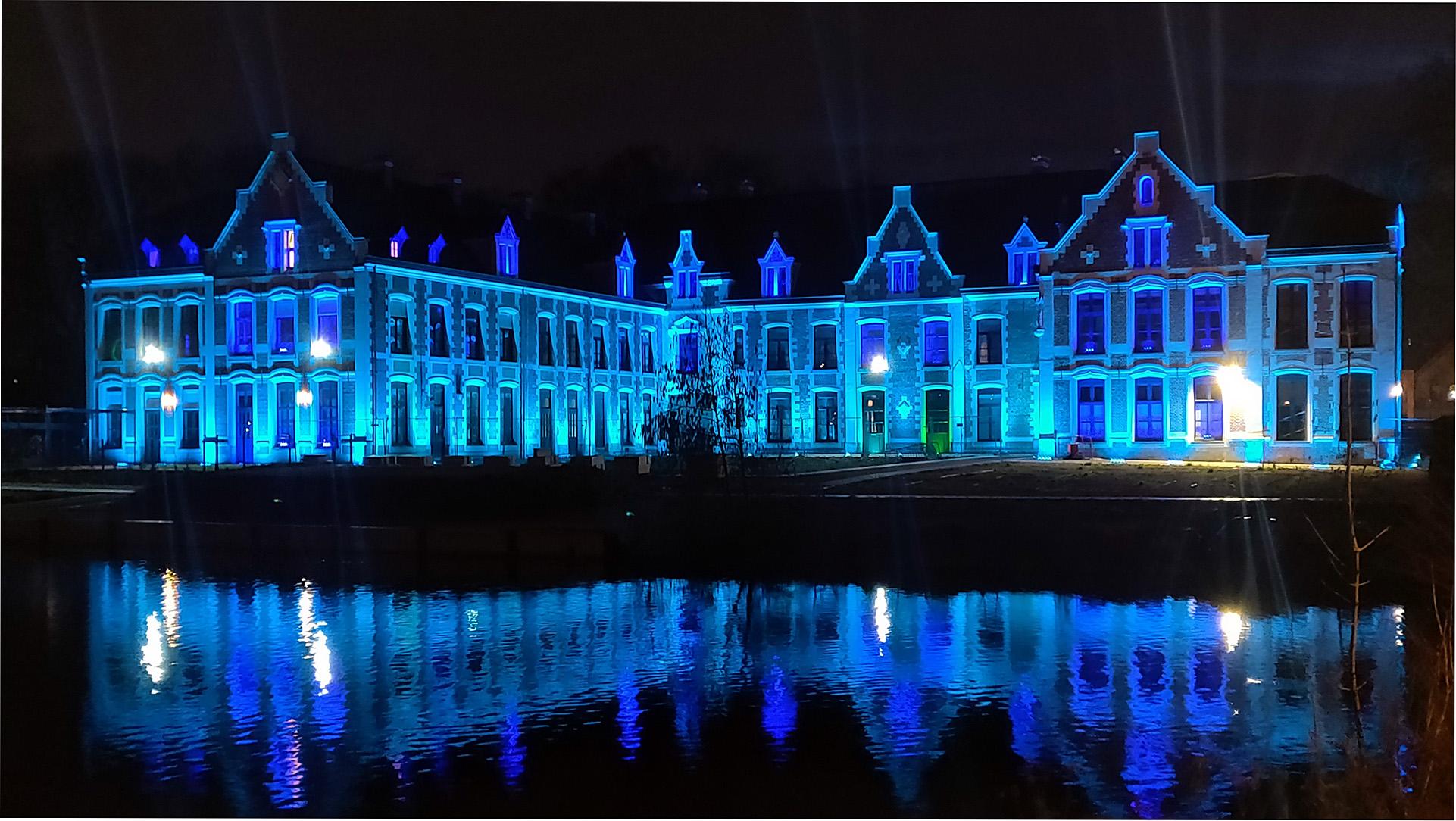 En mars, le château de Robersart se pare de bleu en soirée pour accompagner la campagne d'incitation au dépistage des cancers colorectaux.