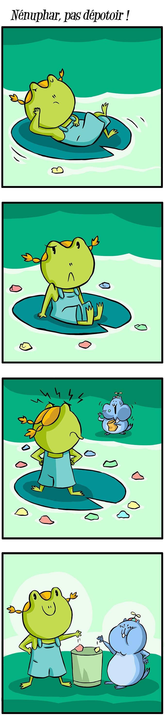 Distribution de kits zéro déchet dans les écoles publiques élémentaires mardi, grand ménage de printemps samedi : le souci de la salubrité de l'environnement est au coeur des préoccupations actuelles... et de celles de Juliette, qui tient à la propreté de son étang !