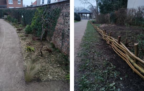 Le service des espaces verts a paillé plusieurs massifs du Jardin de la Comtesse grâce aux sapins de Noël collectés.