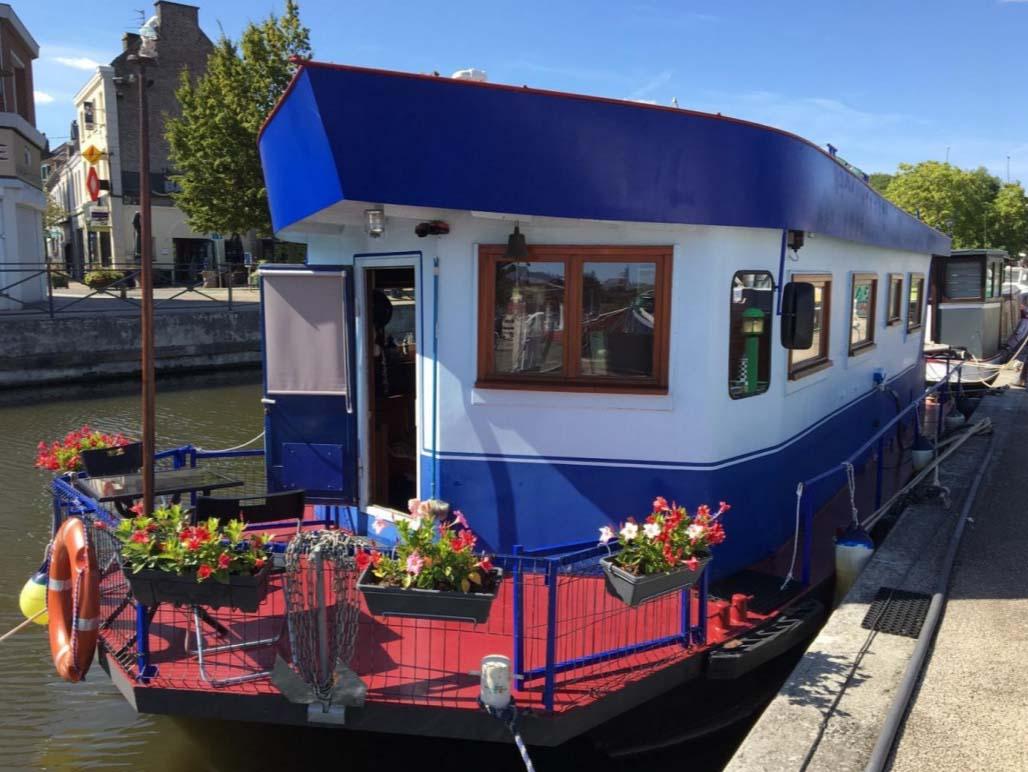 Amarrée dans le port de plaisance de Wambrechies, cette péniche de 30m2 peut accueillir deux personnes.