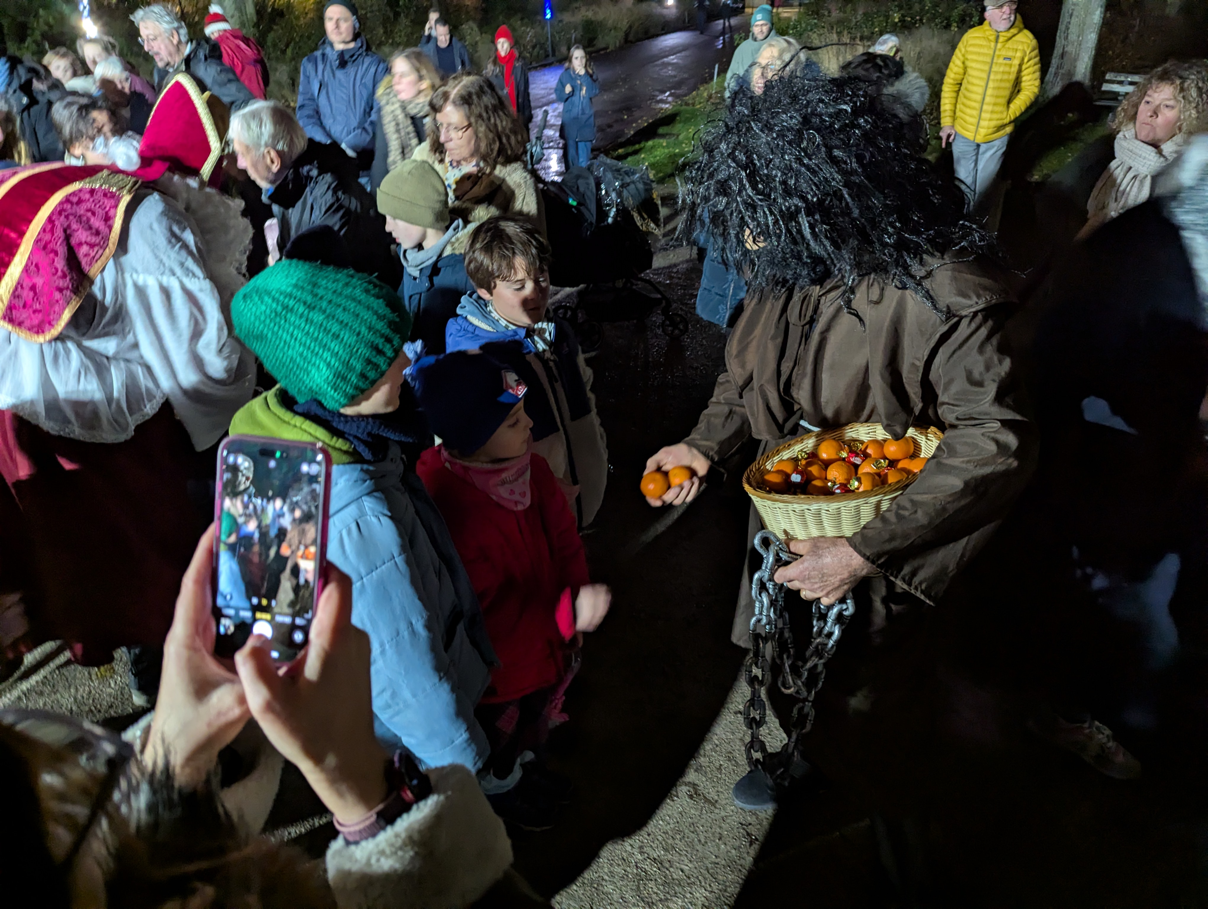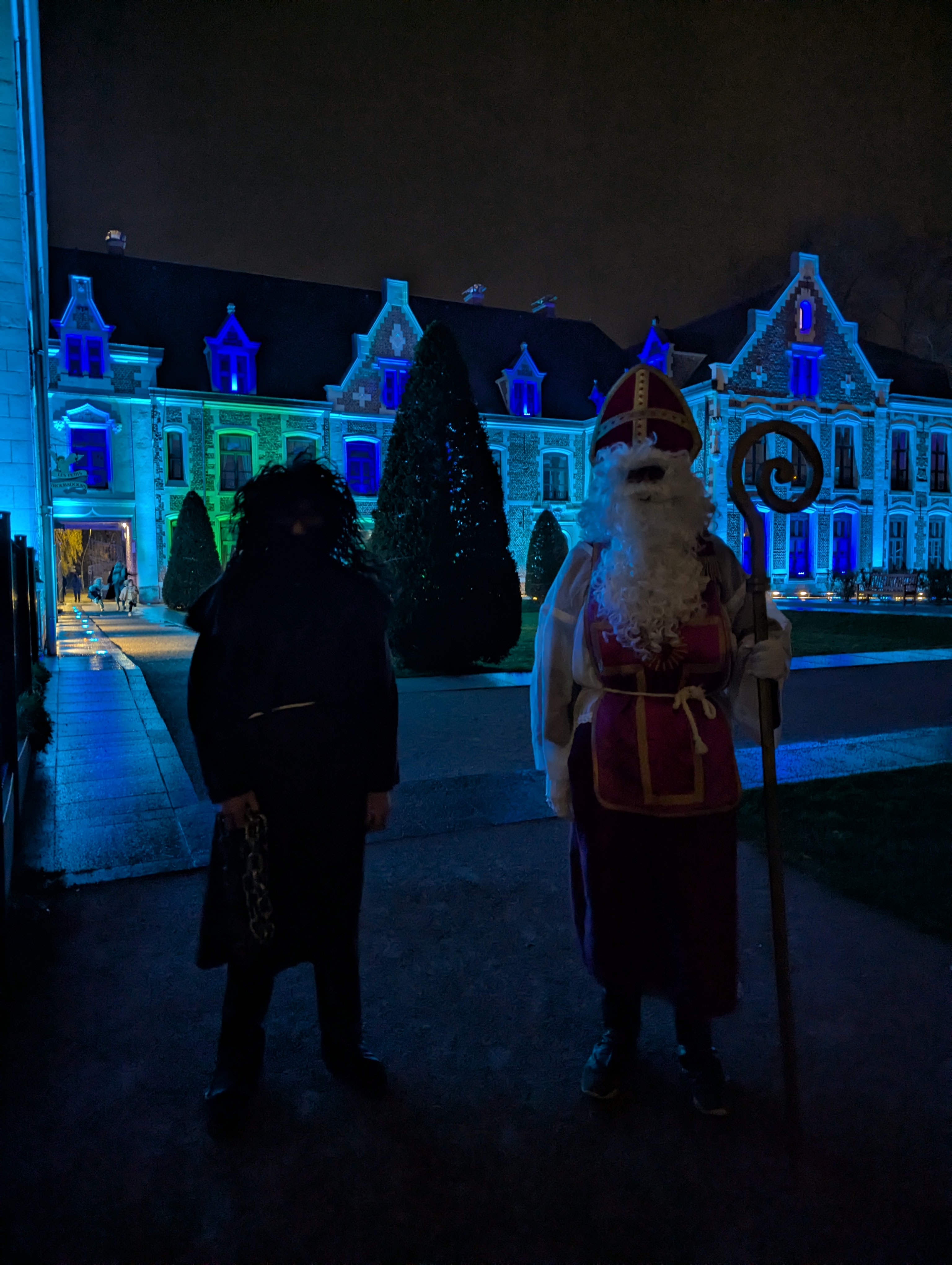 Une météo humide, un vent sensible... mais du monde, des enfants les yeux écarquillés, des parents heureux : l'arrivée de Saint Nicolas, bien évidemment accompagné du Père Fouettard samedi 6 décembre au kiosque du parc de Robersart, a ravi tout le monde, à commencer par les 2 acteurs principaux, ravis de distribuer chocolats & clémentines à qui le demandait !