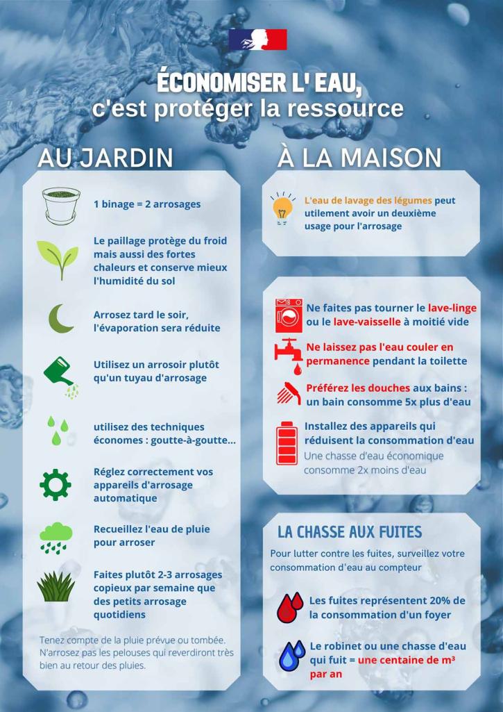 Tous les usagers sont appelés à diminuer leurs consommations d’eau potable ainsi que leurs prélèvements dans le milieu naturel.